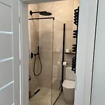 Modernaus 2 kambarių buto su balkonu Palangoje yra balkonas, terasa ir poilsio zona, taip pat patogumai, tokie kaip oro kondicionierius. Svečiai bus sužavėti vonios kambaryje esančiais plaukų džiovintuvu ir rankšluosčiais. Taip pat yra atskira tualeto zona ir dušas.